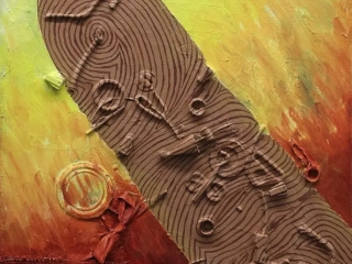 Finger Painting 2 by Jeffrey van LeeuwenFound objects, adhesive, oil on canvas