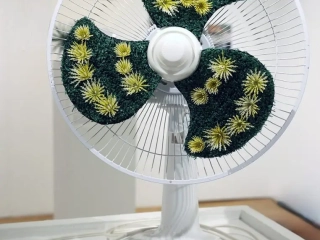 Fresh Air by Jeffrey van LeeuwenOscillating fan, grass carpet, plastic flowers, adhesive