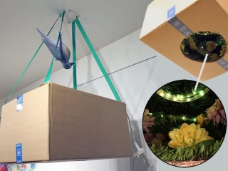 Nature Vision Pro by Jeffrey van LeeuwenCardboard box, grass carpet, plastic flowers, plastic dove decoy, LED strip light, speaker, adhesive, tape, packing straps, extension cord